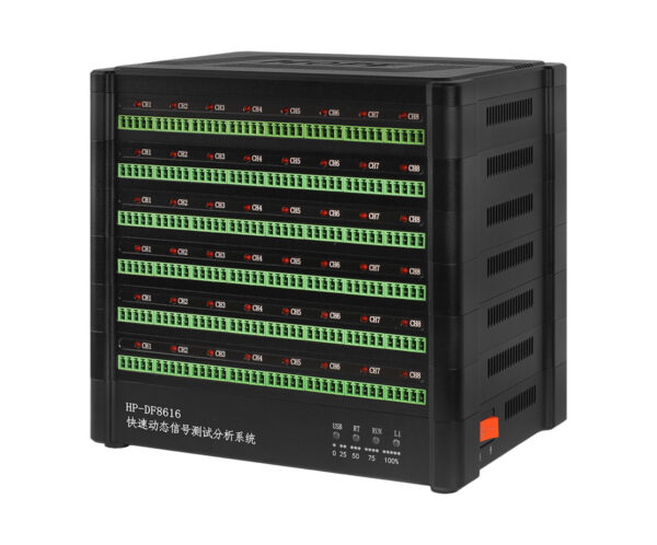 HP-DF is a fast dynamic signal test and analysis DAQ designed for high-speed, multi-channel, synchronous acquisition in lab and field testing. It supports DC/AC/IEPE/strain inputs and a wide range of sensor types (strain, voltage, current, temperature, displacement, acceleration, speed, and more). With parallel synchronized sampling up to 1 MHz, per-channel hardware auto-balance, and built-in excitation, HP-DF is ideal for vibration testing, shock testing, transient capture, and multi-point structural measurements where timing alignment across channels is critical.