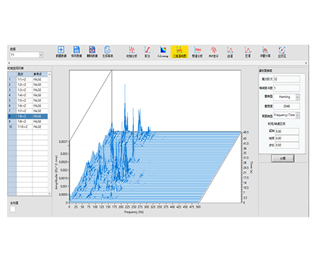 HP-STAP 3D Waterfall Plot Analysis Software provides a 3D waterfall visualization for signals and spectra, using the same workflow and parameter settings as a Colormap display—while upgrading the presentation from a 2D color map to a 3D waterfall plot. It clearly shows how frequency (or order) changes over time and how amplitude evolves.